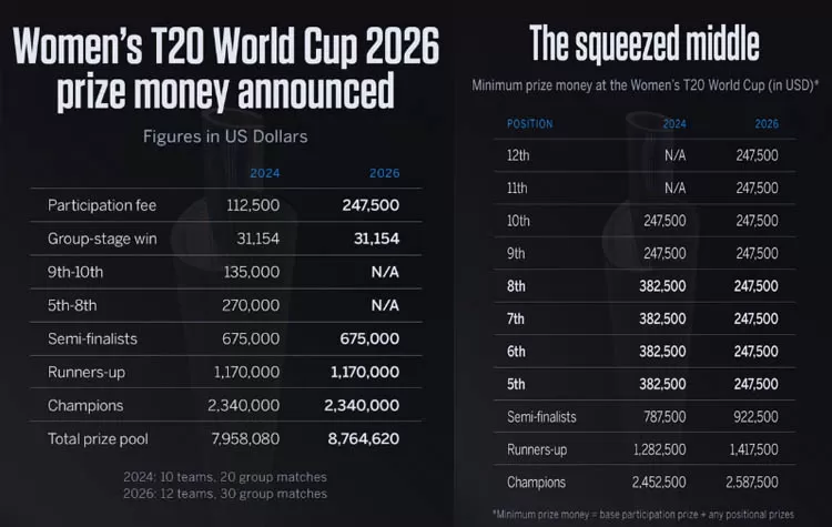 ICC Women’s T20 World Cup 2026 Prize Money Details